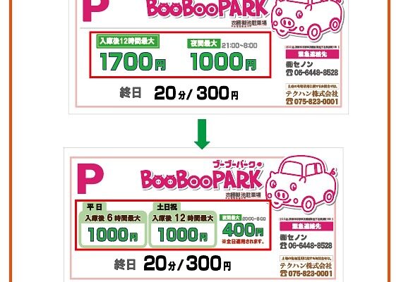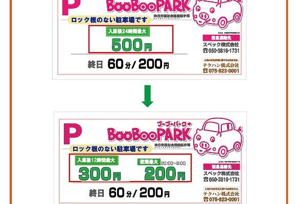 昼間最大料金が500円から100円値下げ、400円で運営中です。